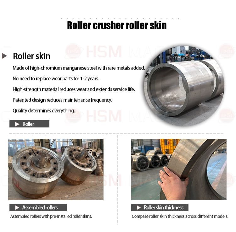 A: The service life depends on the material hardness and the roller’s alloy composition. At HSM, we use high-chromium manganese steel or tungsten carbide studs (HRC 58-62). For standard river pebbles, our rollers typically last 2,000 to 4,000 hours. We also offer customized wear-resistant coatings for extremely abrasive iron ore.